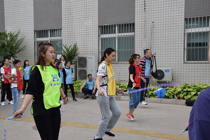 此次比賽分別是拔河比賽、踢毽子、跳繩、五毛一塊、面面相聚、搭橋過河、勤勞的小蜜蜂等項目?;顒幼钕乳_始的熱身比賽拔河,在比賽中,每隊隊員使出了渾身解數(shù),全力以赴也要分個高下。哪怕拼命向后的身體被對手逐漸拽向前方,哪怕宣告失敗的哨聲有些尖銳,哪怕失落的情緒讓人惆悵,但新的比賽開始,場上場下又都瞬間充滿了斗志,“加油,加油!”的呼聲震耳欲聾。