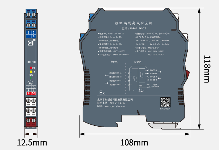 PHD-11TC-22通訊信號輸入隔離式安全柵,可實現(xiàn)RS-485全雙工數(shù)字信號在危險區(qū)和安全區(qū)的雙向通信。