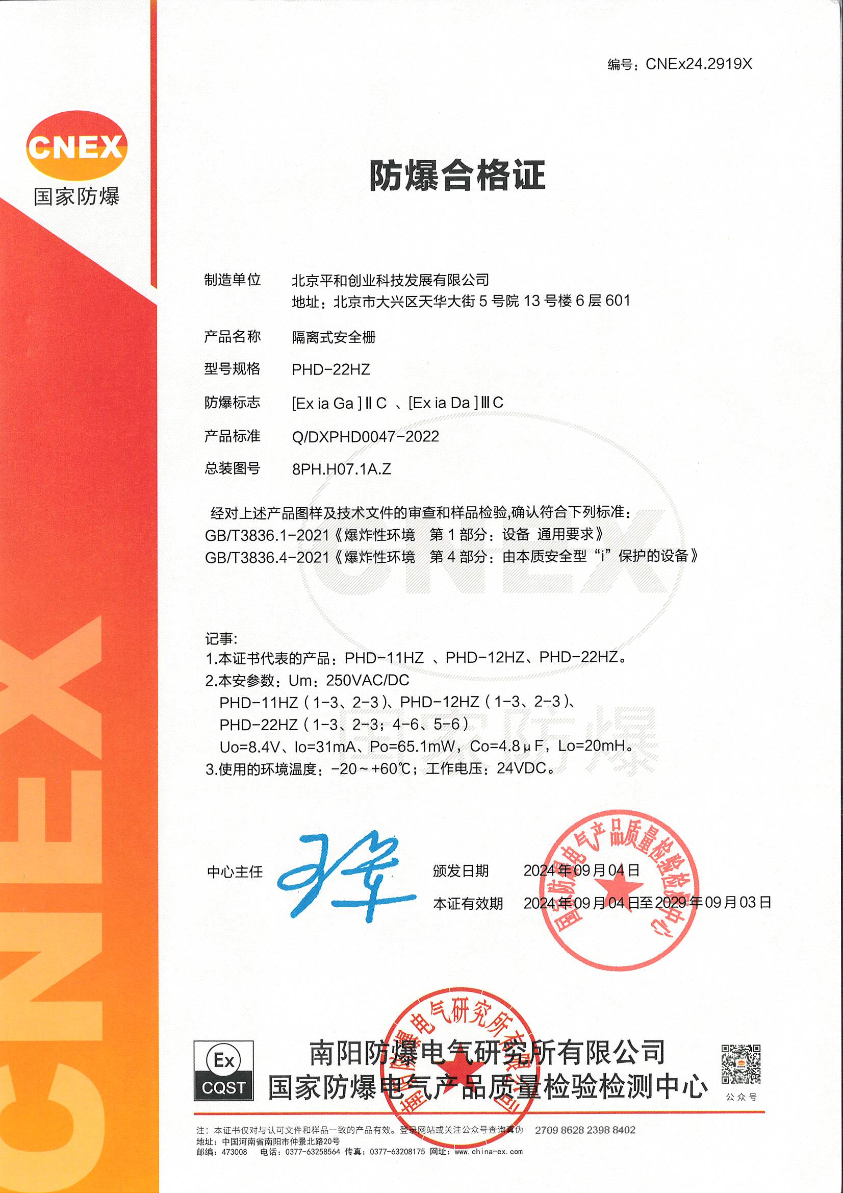 | 認(rèn)證機(jī)構(gòu) | 國家防爆電氣產(chǎn)品質(zhì)量監(jiān)督檢驗(yàn)中心CQST認(rèn)證 |