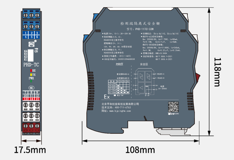 PHD-11TC-11通訊信號(hào)輸入隔離式安全柵,可實(shí)現(xiàn)RS-485半雙工數(shù)字信號(hào)在危險(xiǎn)區(qū)和安全區(qū)的雙向通信。電路為現(xiàn)場(chǎng)儀表提供配電電源??赏ㄟ^(guò)頂部撥碼開關(guān)切換電壓值。具體操作方法見下側(cè)圖表。