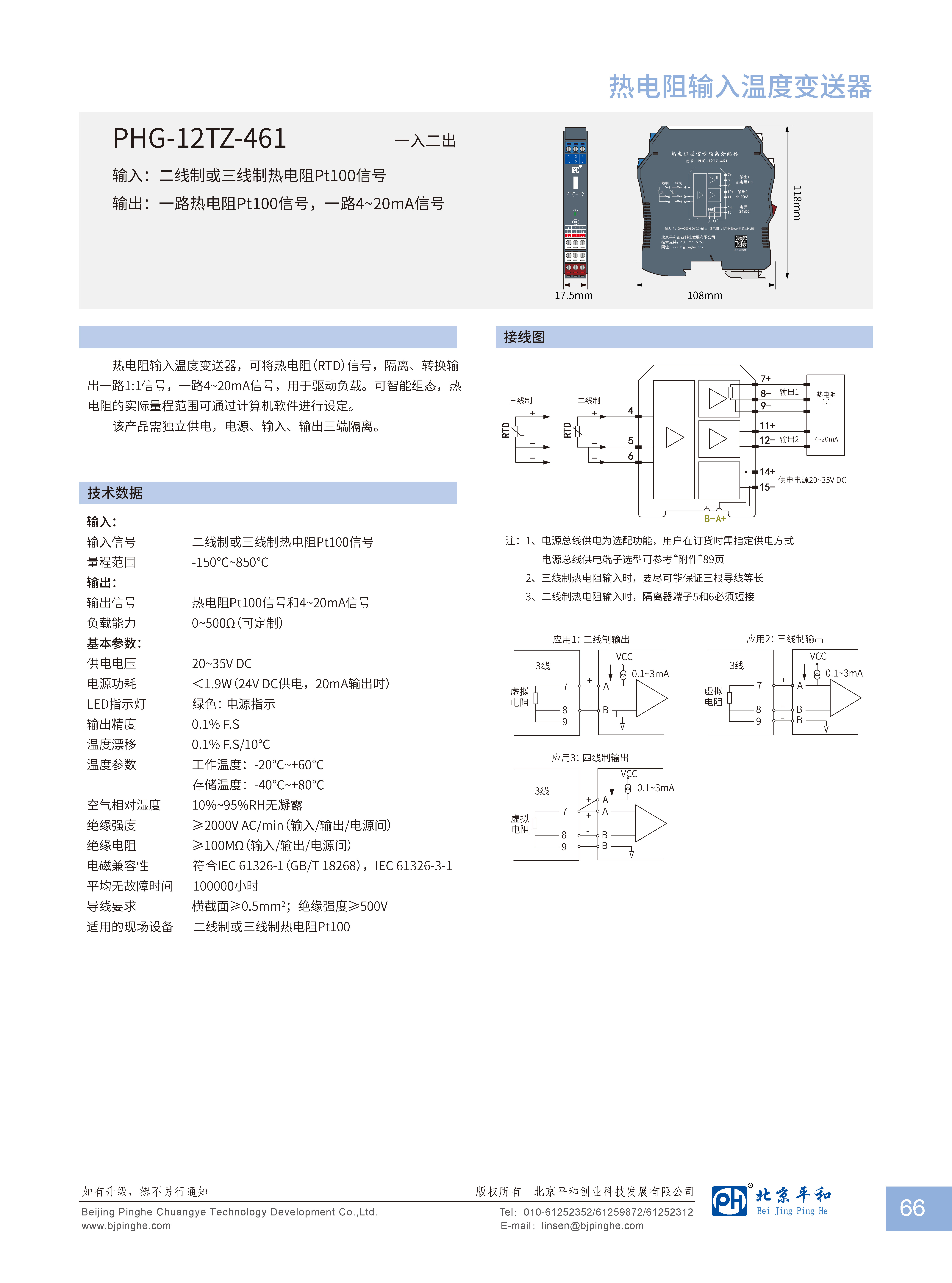 輸出:一路熱電阻Pt100信號,一路4~20mA信號