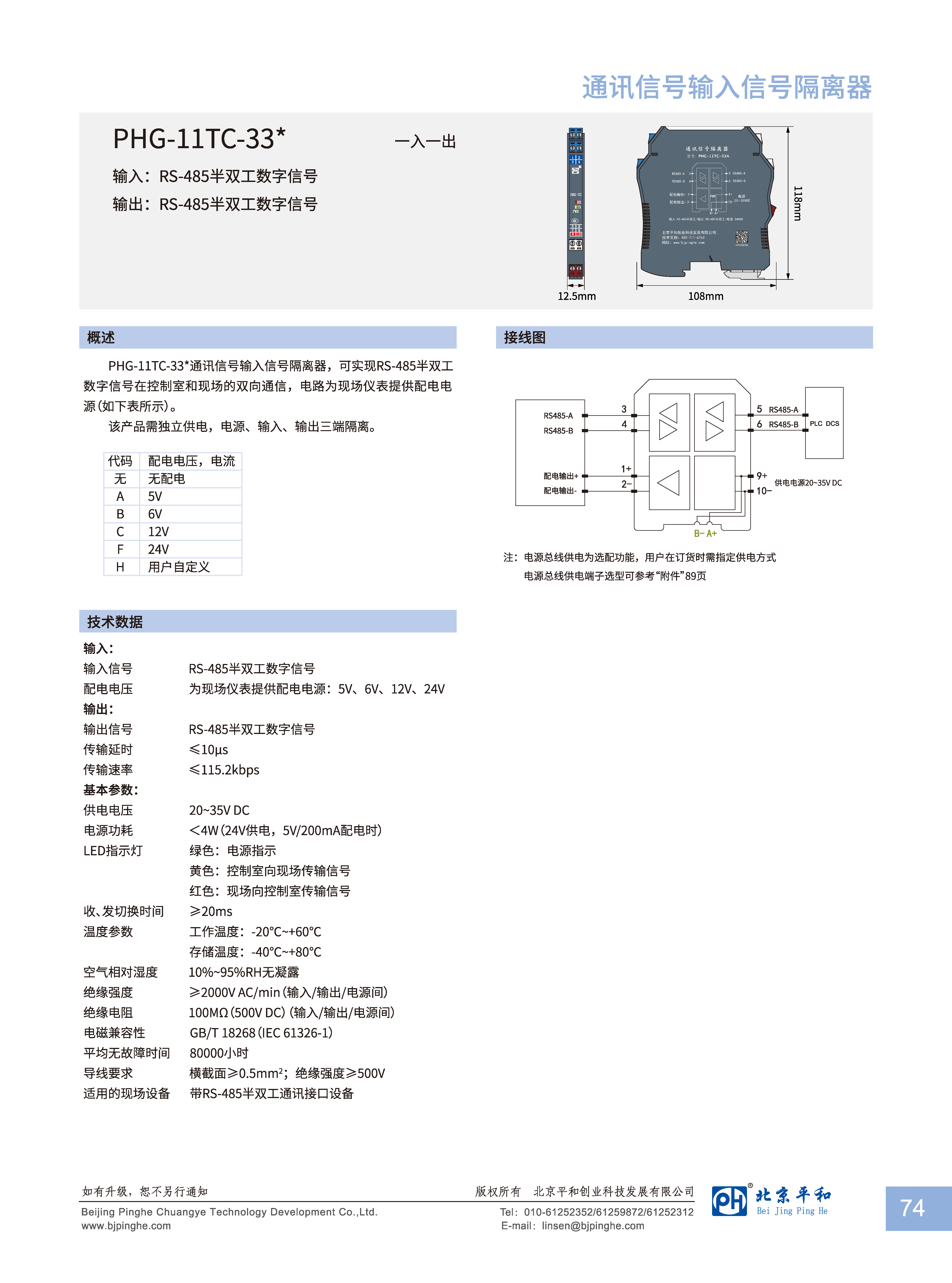 PHG-11TC-33*通訊信號(hào)輸入信號(hào)隔離器,可實(shí)現(xiàn)RS-485半雙工數(shù)字信號(hào)在控制室和現(xiàn)場的雙向通信,電路為現(xiàn)場儀表提供配電電源(如下表所示)。
