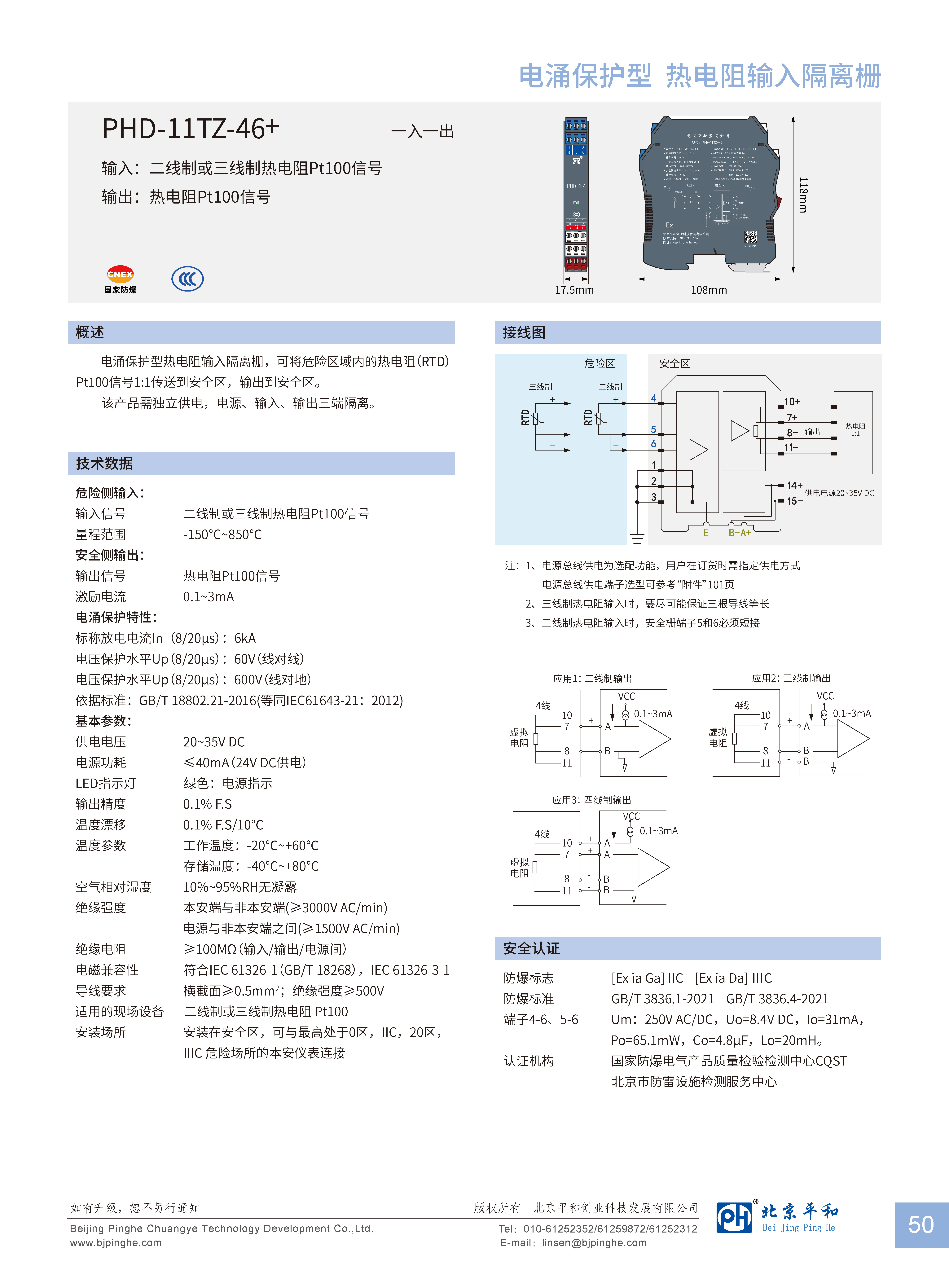 電涌保護型熱電阻輸入隔離柵,可將危險區(qū)域內的二線制或三線制熱電阻(RTD)Pt100信號1:1傳送到安全區(qū)。