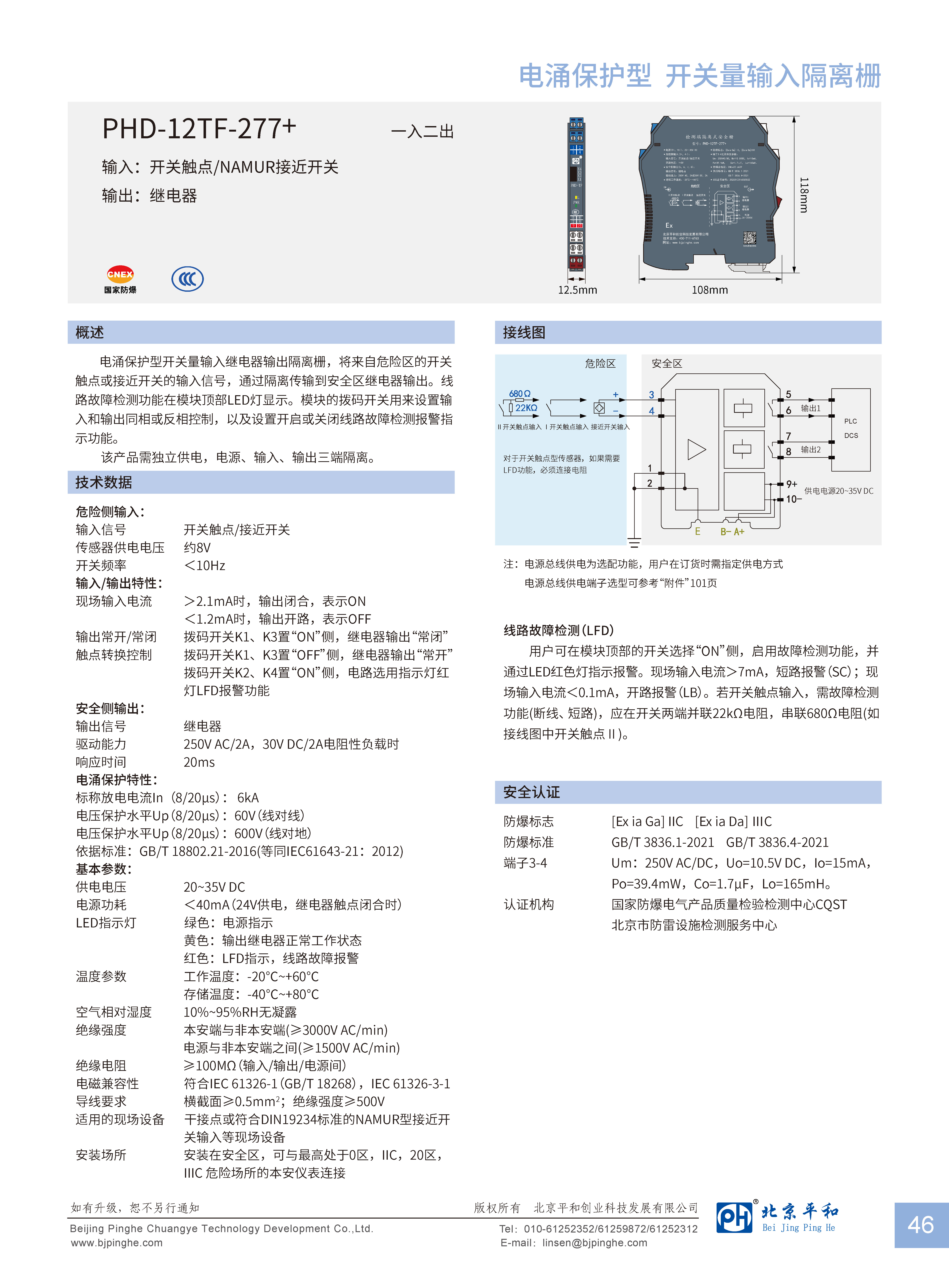 電涌保護(hù)型開(kāi)關(guān)量輸入繼電器輸出隔離柵,將來(lái)自危險(xiǎn)區(qū)的開(kāi)關(guān)觸點(diǎn)或接近開(kāi)關(guān)的輸入信號(hào),通過(guò)隔離傳輸?shù)桨踩珔^(qū)繼電器輸出。線路故障檢測(cè)功能在模塊頂部LED燈顯示。模塊的撥碼開(kāi)關(guān)用來(lái)設(shè)置輸入和輸出同相或反相控制,以及設(shè)置開(kāi)啟或關(guān)閉線路故障檢測(cè)報(bào)警指示功能。