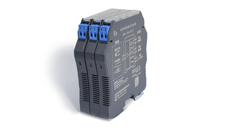 電涌保護(hù)型開關(guān)量輸入晶體管輸出隔離柵,將來自危險(xiǎn)區(qū)的開關(guān)觸點(diǎn)或接近開關(guān)的輸入信號(hào),通過隔離傳輸?shù)桨踩珔^(qū)晶體管輸出。線路故障檢測功能在模塊頂部LED燈顯示。模塊的撥碼開關(guān)用來設(shè)置輸入和輸出同相或反相控制,以及設(shè)置開啟或關(guān)閉線路故障檢測報(bào)警指示功能。