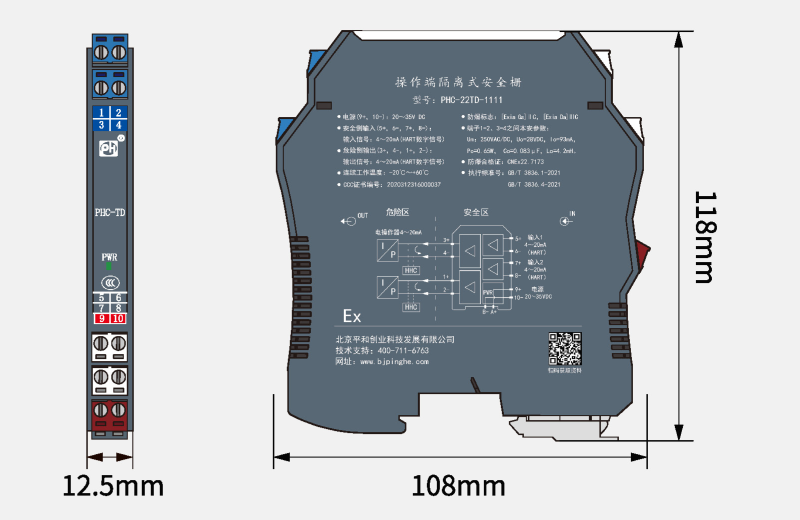 | 外形尺寸 | 厚12.5mm×寬108mm×高118mm |