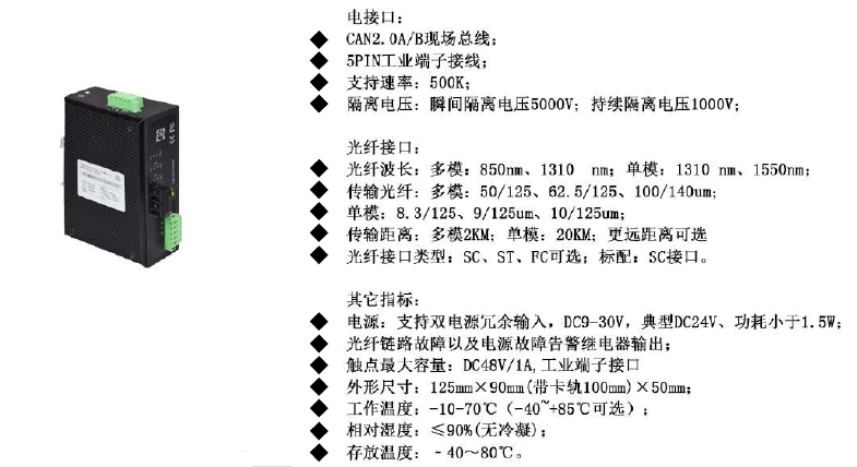 *支持CAN2.0A/B工業(yè)控制現(xiàn)場總線協(xié)議,通信速率支持50OK。*電接口具備1500V電壓隔離以及600W浪涌保護(hù)功能。