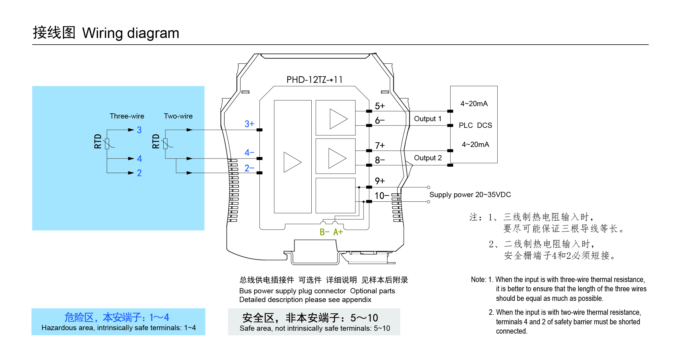 PHD-12TZ-X11 一入二出輸入:二線制或三線制熱電阻信號