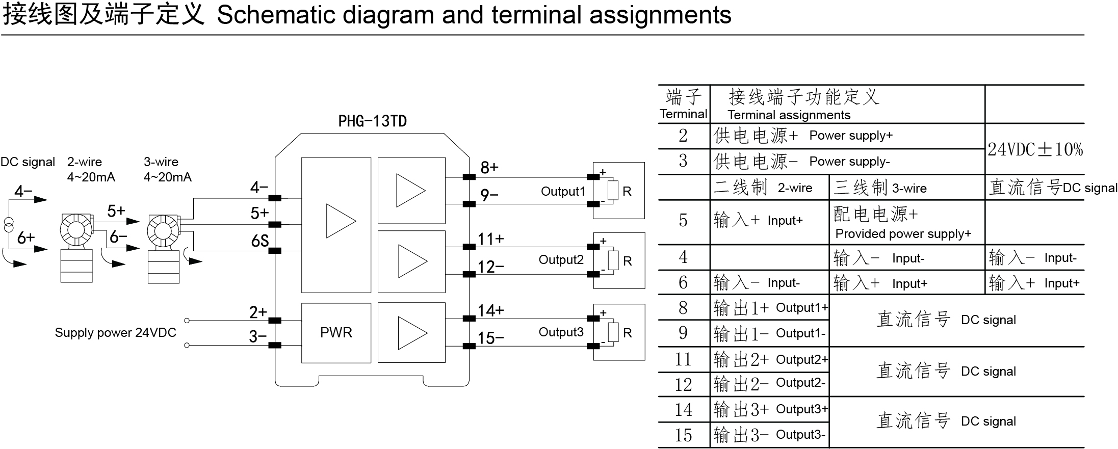輸入: 二、三線制變送器或直流信號