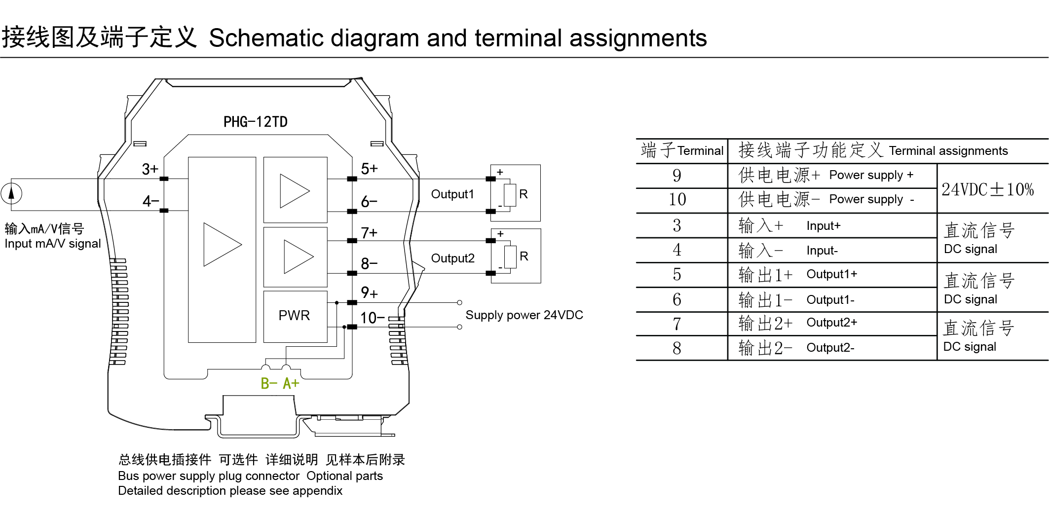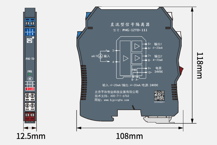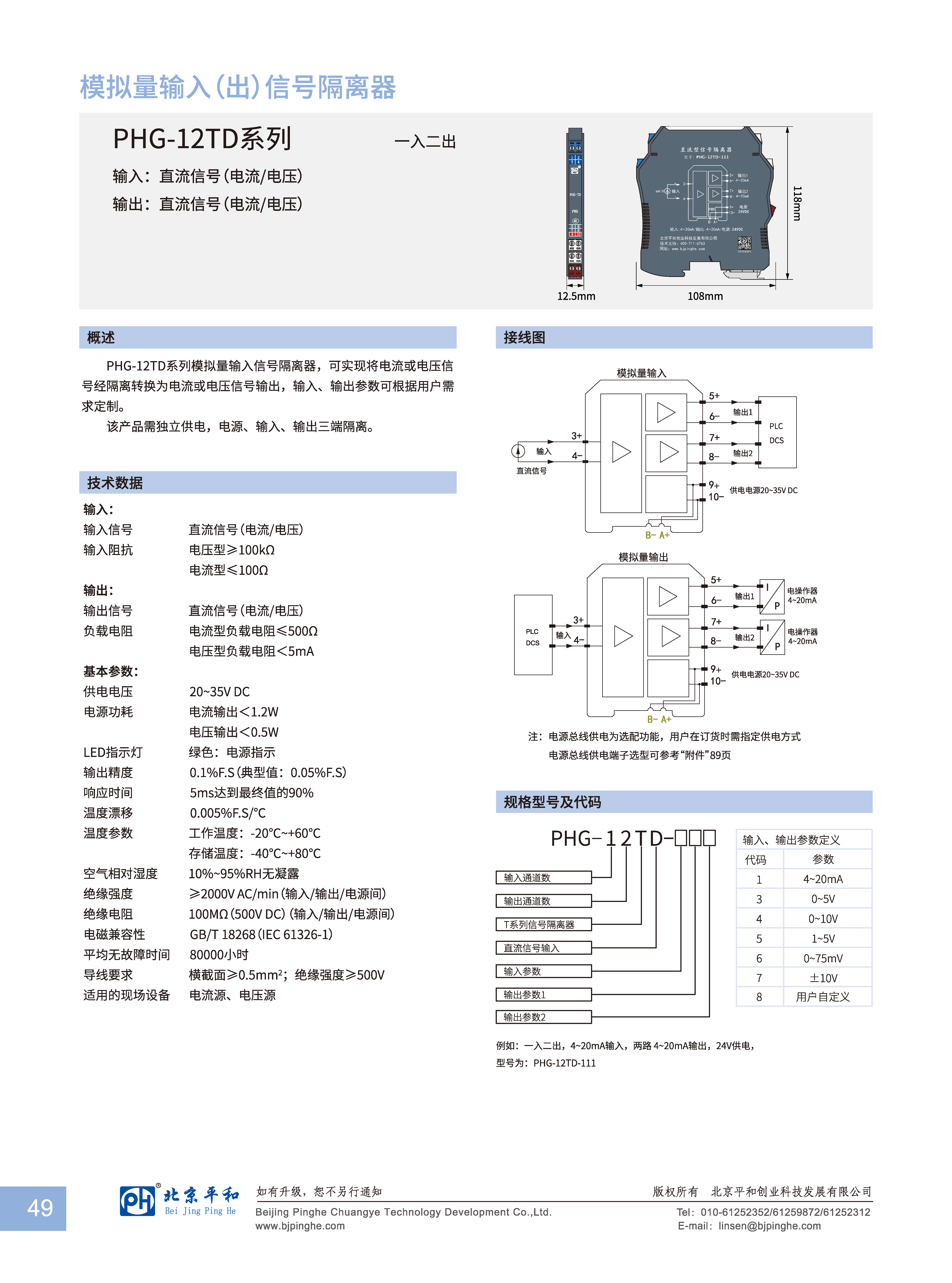 PHG-12TD系列模擬量輸入信號隔離器,可實現(xiàn)將電流或電壓信號經(jīng)隔離、轉換為電流或電壓信號輸出,輸入、輸出參數(shù)可根據(jù)用戶需求定制。