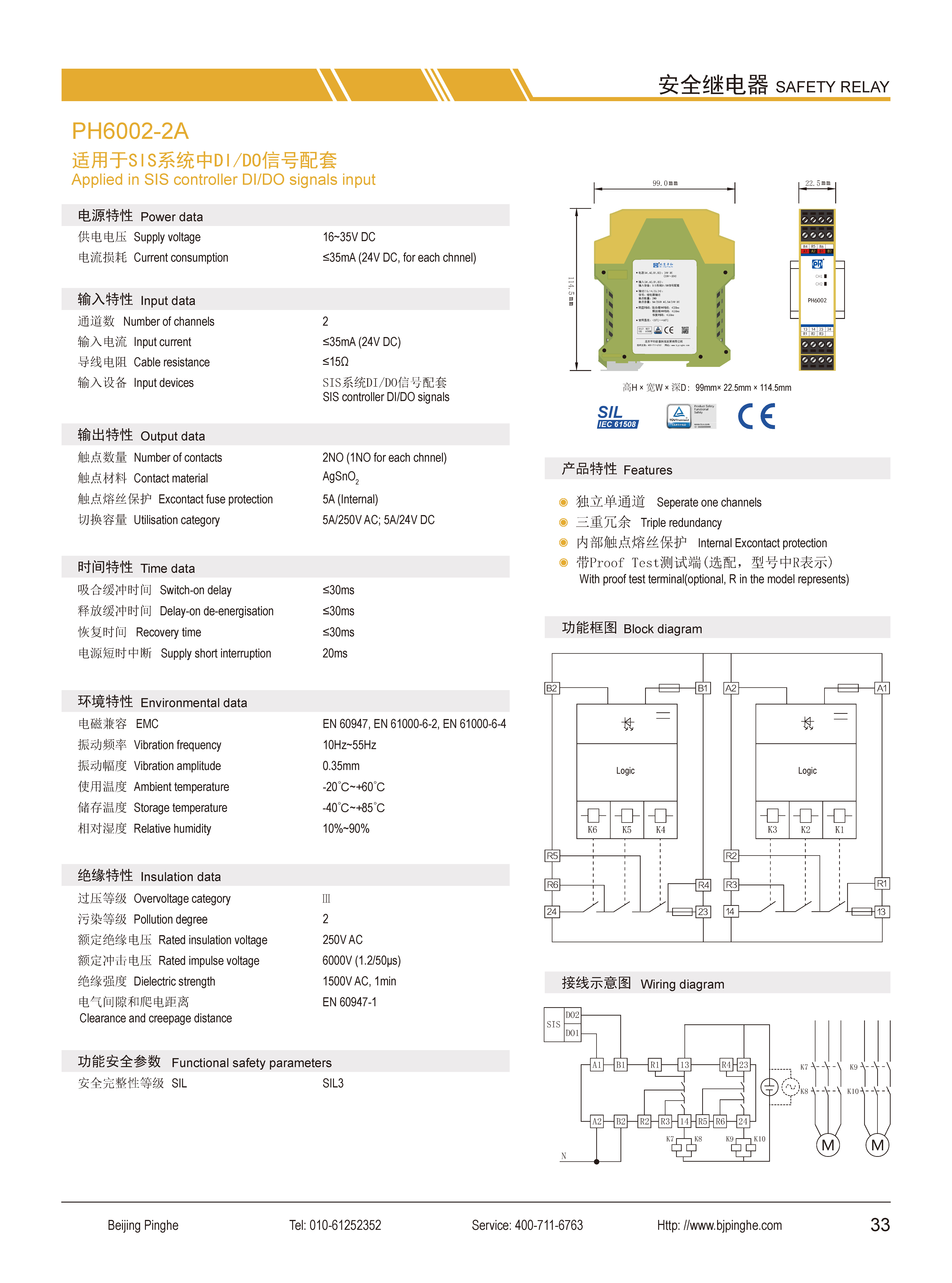 PH6002-2A是一款安全繼電器控制模塊,適用于安全開關(guān)、SIS系統(tǒng)中DO信號(hào)隔離轉(zhuǎn)換,具有2路常開(NO)觸點(diǎn),預(yù)留端子方便實(shí)現(xiàn)快速的離線Proof Test測(cè)試,內(nèi)部電路采用Fail-safe技術(shù),3重冗余技術(shù)和觸點(diǎn)熔接保護(hù)技術(shù)。
