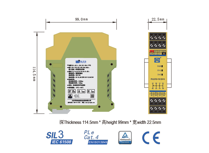 PH6202-3A1B-N是一款安全繼電器控制模塊,適用于NPN型安全光幕輸入,具有3路常開(kāi)(NO)安全輸出觸點(diǎn)和1路常閉(NC)輔助輸出觸點(diǎn)的安全繼電器。它支持雙通道操作,可選擇手動(dòng)或自動(dòng)復(fù)位。