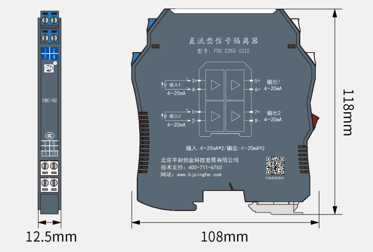 該產品無需獨立供電,輸入、輸出之間隔離。