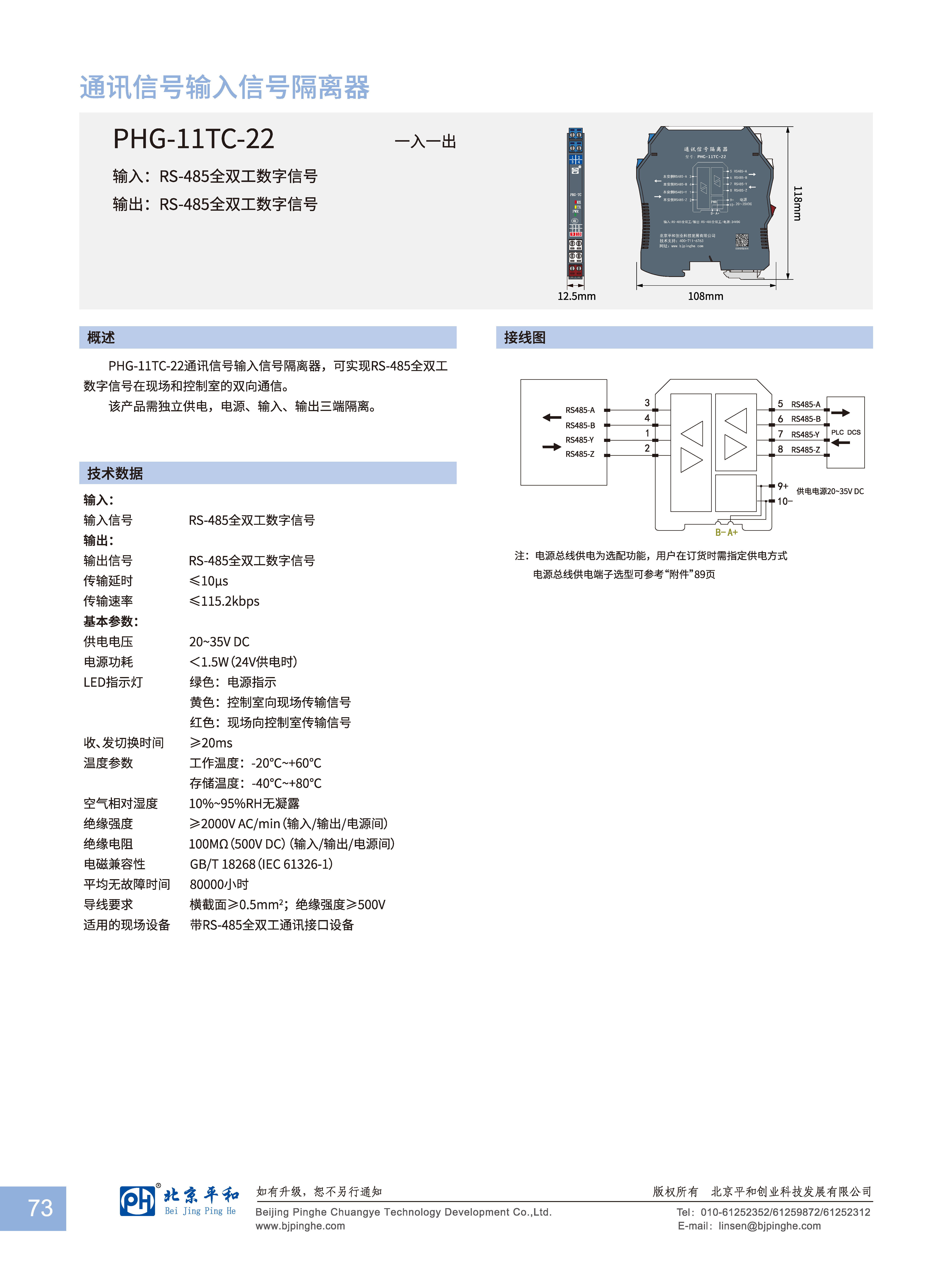 PHG-11TC-22通訊信號(hào)輸入信號(hào)隔離器,可實(shí)現(xiàn)RS-485全雙工數(shù)字信號(hào)在現(xiàn)場和控制室的雙向通信。
