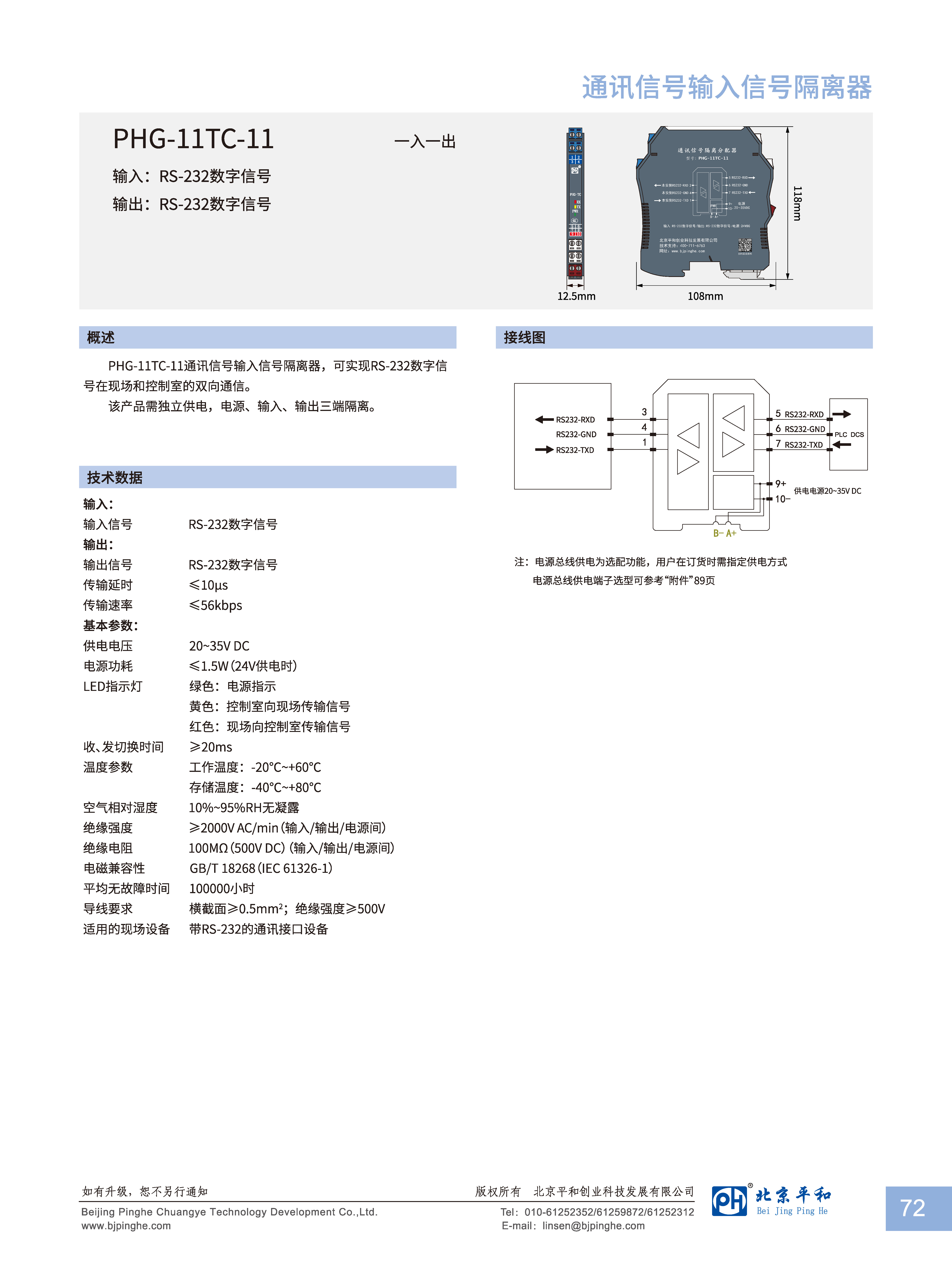 PHG-11TC-11通訊信號輸入信號隔離器,可實(shí)現(xiàn)RS-232數(shù)字信號在現(xiàn)場和控制室的雙向通信。