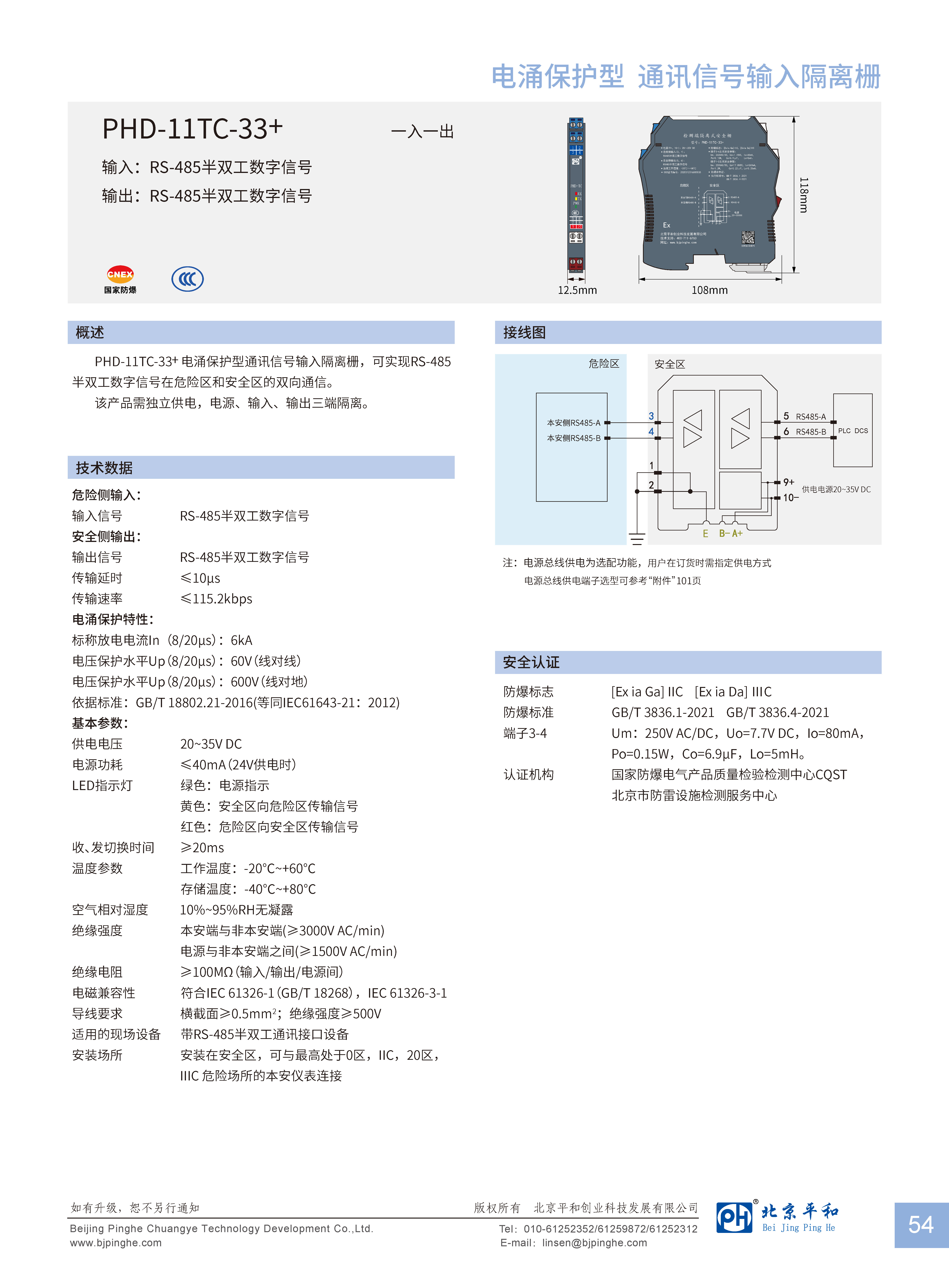 PHD-11TC-33+電涌保護(hù)型通訊信號(hào)輸入隔離柵,可實(shí)現(xiàn)RS-485半雙工數(shù)字信號(hào)在危險(xiǎn)區(qū)和安全區(qū)的雙向通信。