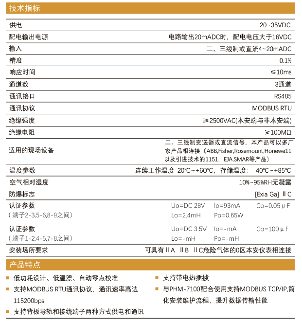 | 絕緣強(qiáng)度 | ≥2500VAC(本安端與非本安端) |