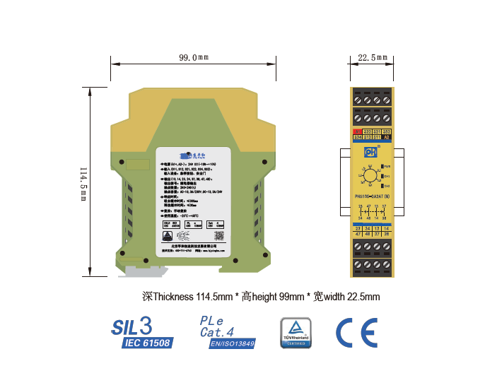 PH6105-2A2AT(M)是一款安全繼電器控制模塊,適用于急停按鈕,安全門控開關(guān)輸入,具有2路非延時常開(NO)安全輸出觸點(diǎn)和2路延時常開(NO)安全輸出觸點(diǎn)的安全繼電器。它可選擇單,雙通道操作,手動復(fù)位,并具有通道間短路監(jiān)控和復(fù)位按鈕監(jiān)控功能。