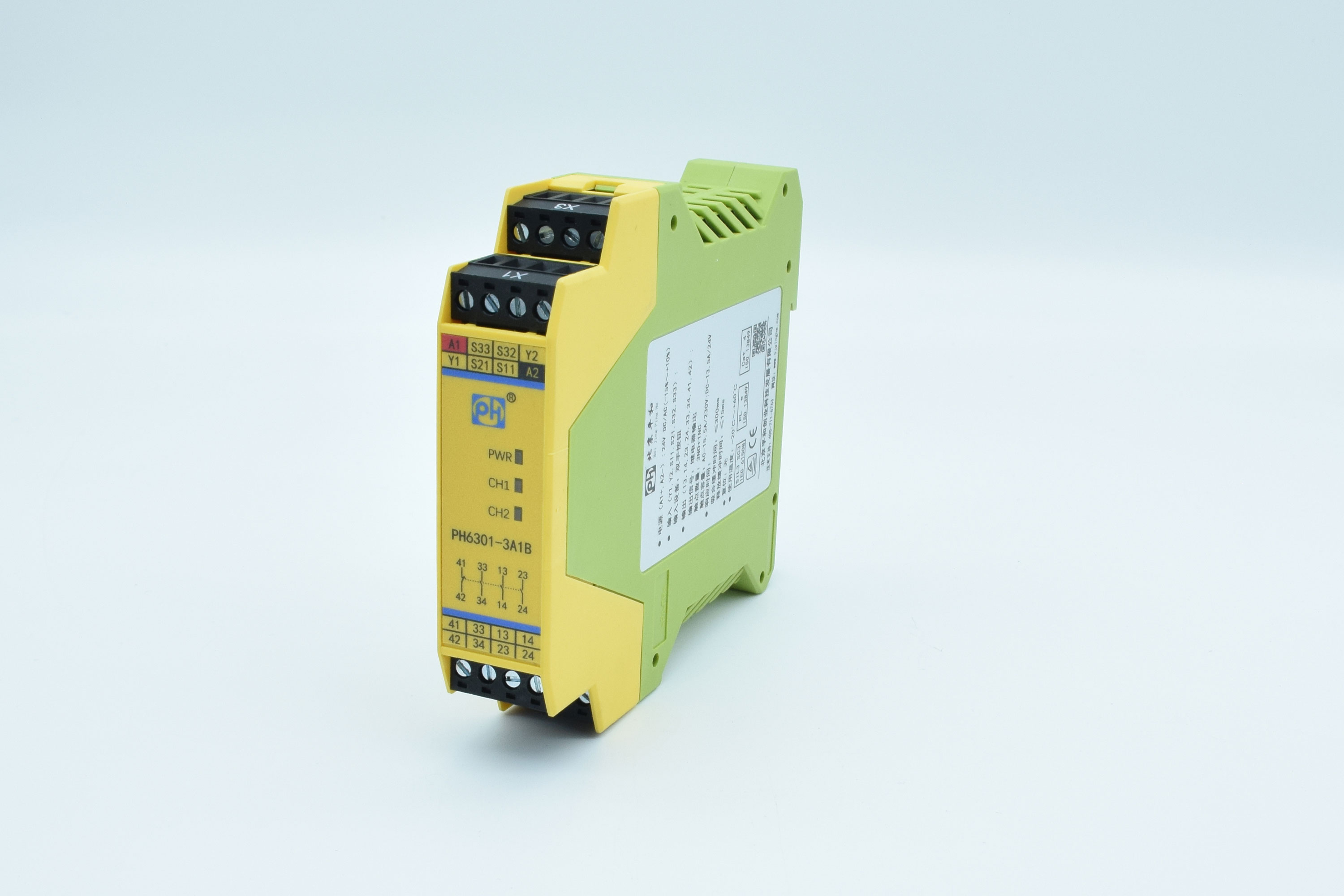 PH6202-2A2B-N是一款安全繼電器控制模塊,適用于NPN型安全光幕輸入,具有2路常開(NO)安全輸出觸點(diǎn)和2路常閉(NC)輔助輸出觸點(diǎn)的安全繼電器。它支持雙通道操作,可選擇手動(dòng)或自動(dòng)復(fù)位。