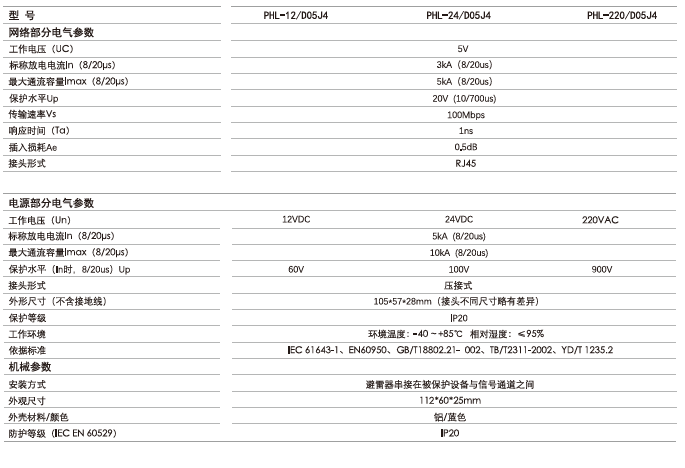 PHL-220/D05J4 電源網(wǎng)絡二合一監(jiān)控專用防雷器
